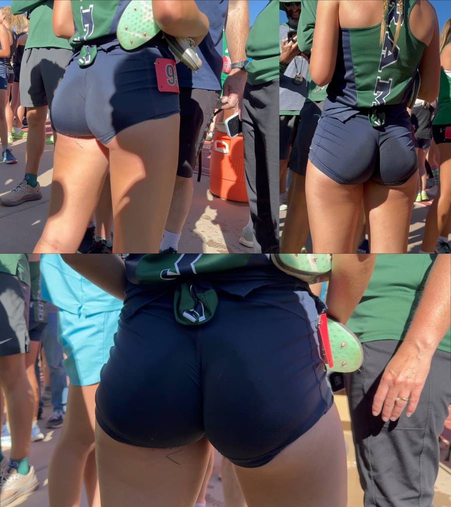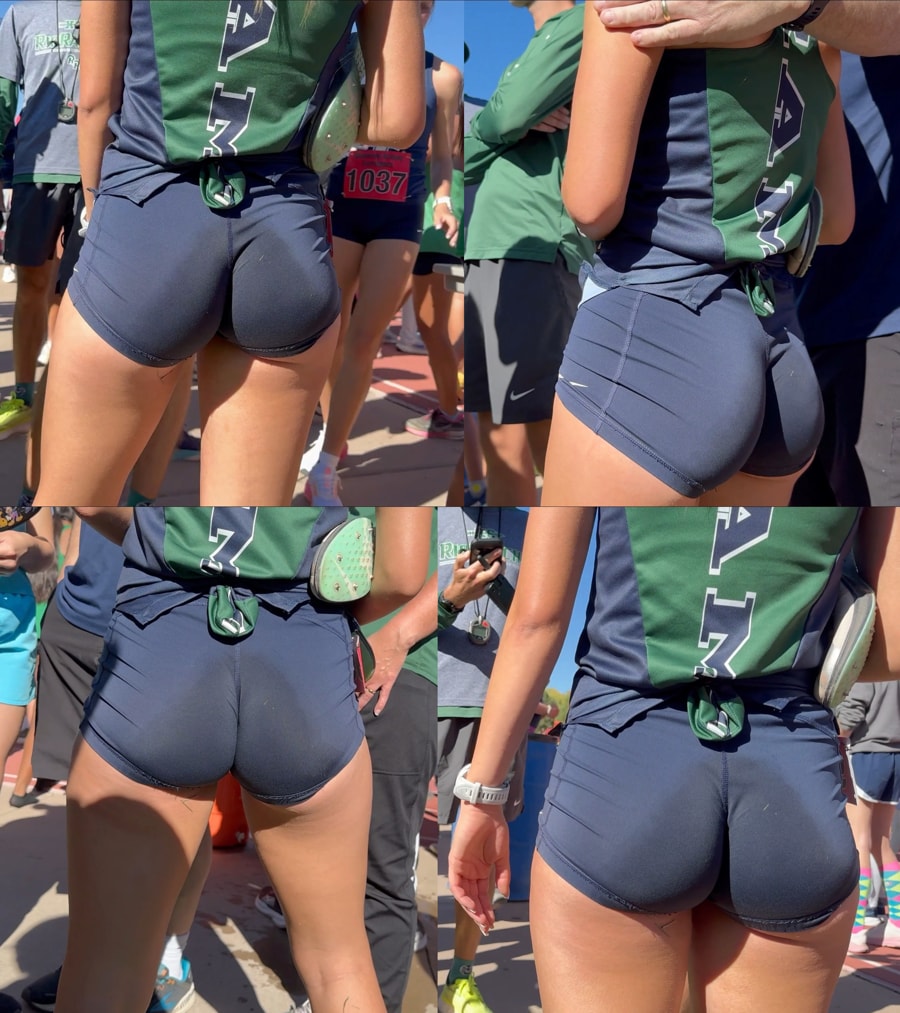 Bubble Butt teen with Cheeks hanging out in wet spandex Shorts